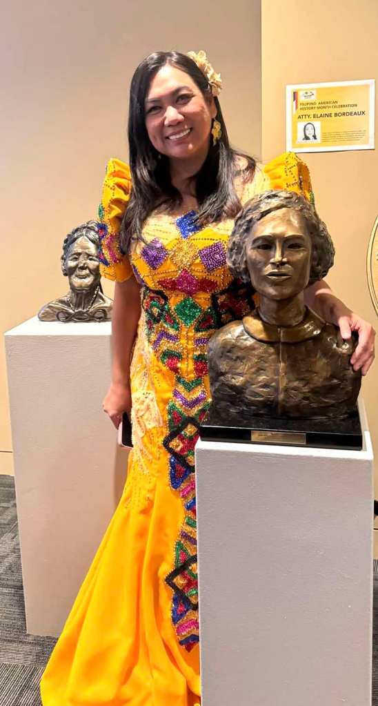 Her second sculpture, a powerful depiction of Magdalena Leones, reminded everyone of the courage Filipina women have shown in times of adversity. Leones, often referred to as “The Lioness of Filipino Intelligence,” played a vital role in the fight against Japanese occupation during World War II. Elaine Antonio Bordeaux’s sculpture of Leones brought her story to life, standing as a symbol of Filipina resilience and bravery that has often been left out of mainstream historical narratives.